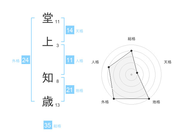 堂上 知歳さんの総格は35画の4点!