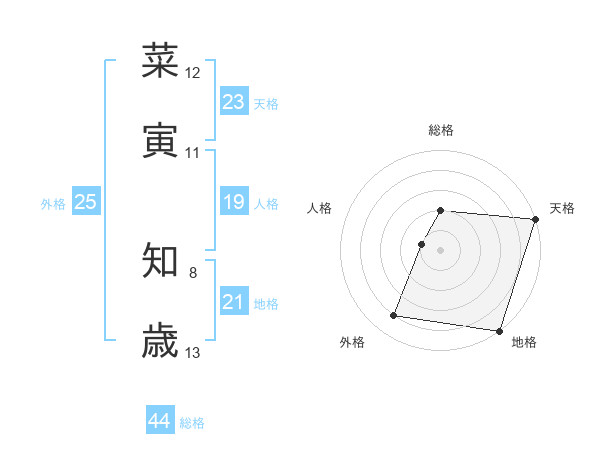 菜寅 知歳さんを姓名の画数から五運を鑑定