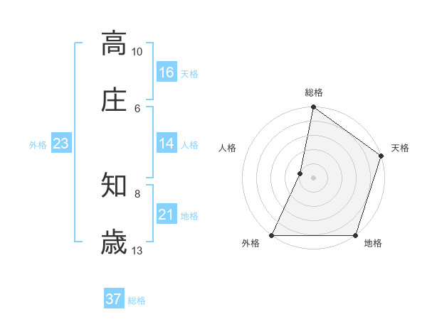 高庄 知歳さんの総格は37画の5点!