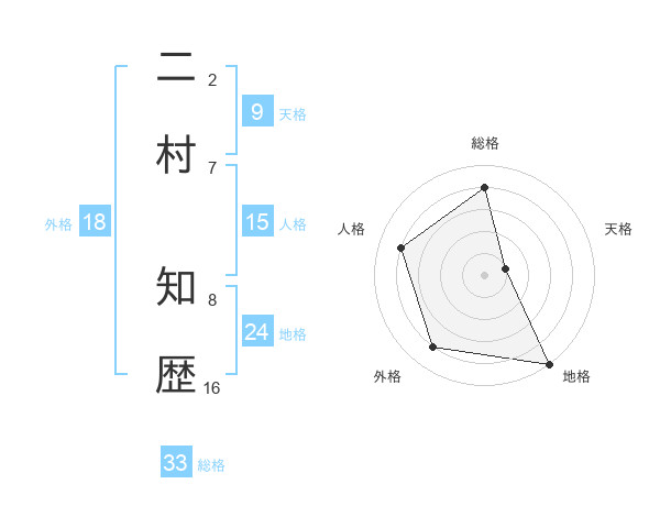 二村 知歴さんの総格は33画の4点!
