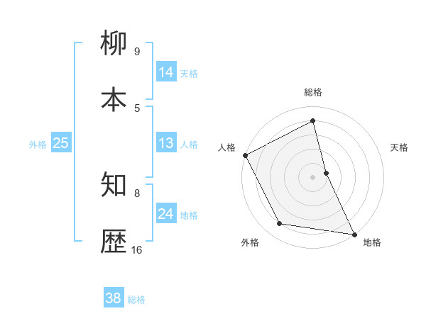 柳本 知歴さんを姓名の画数から五運を鑑定