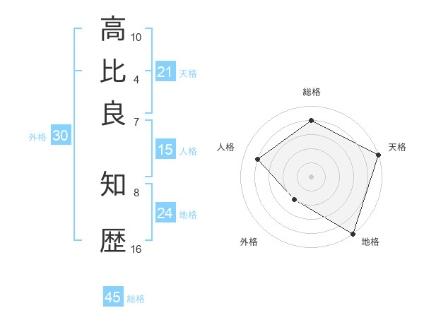 高比良 知歴さんを姓名の画数から五運を鑑定