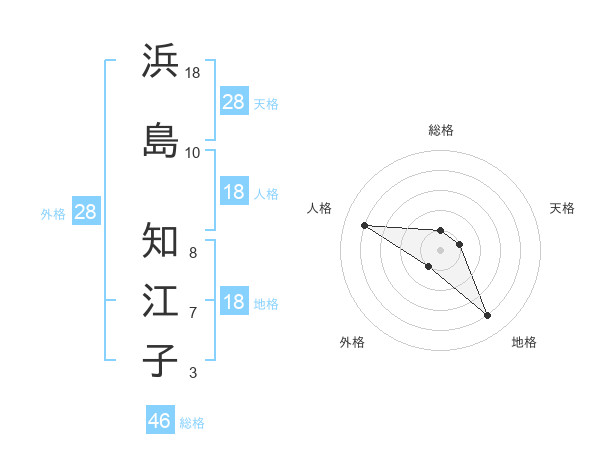 浜島 知江子さんを姓名の画数から五運を鑑定
