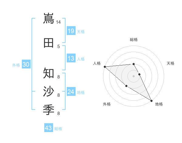 嶌田 知沙季さんの天格は19画の1点!