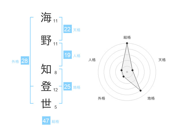 海野 知登世さんの総格は47画の5点!