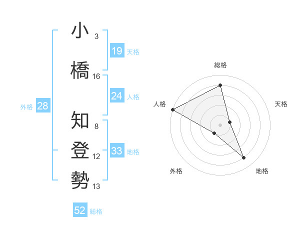 小橋 知登勢さんを姓名の画数から五運を鑑定
