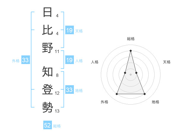 日比野 知登勢さんを姓名の画数から五運を鑑定