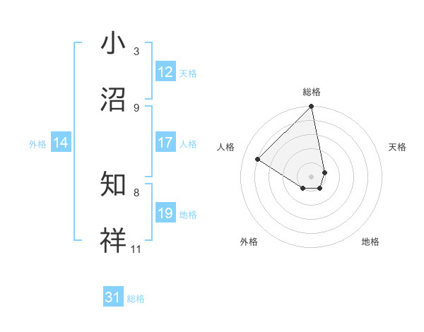 小沼 知祥さんの総格は31画の5点!