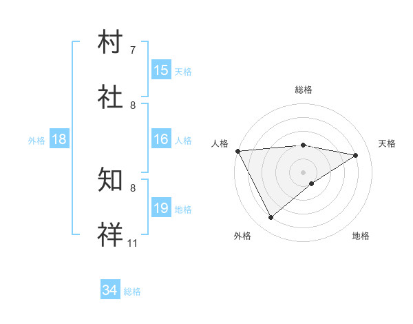 村社 知祥さんの総格は34画の2点!