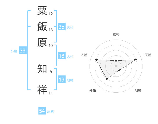粟飯原 知祥さんの総格は54画の1点!