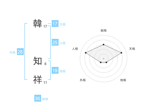 韓 知祥さんの天格は17画の4点!
