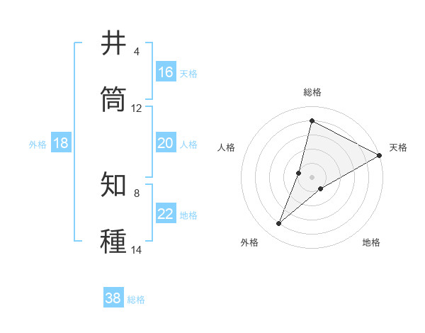 井筒 知種さんの総格は38画の4点!