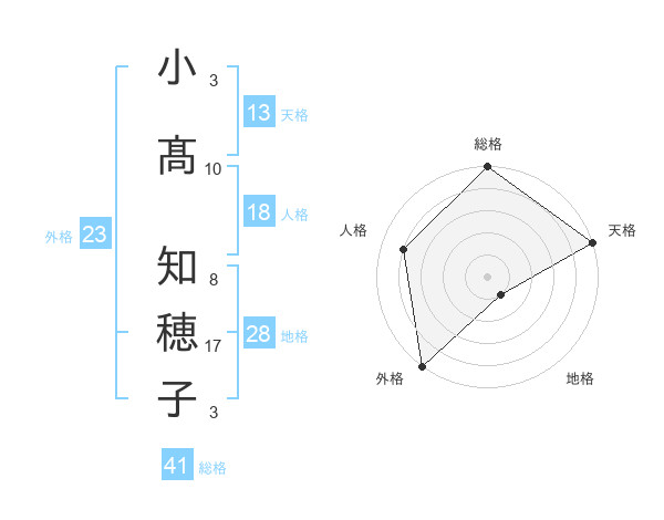 小髙 知穂子さんを姓名の画数から五運を鑑定