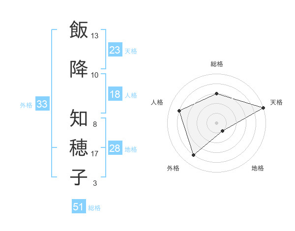 飯降 知穂子さんを姓名の画数から五運を鑑定