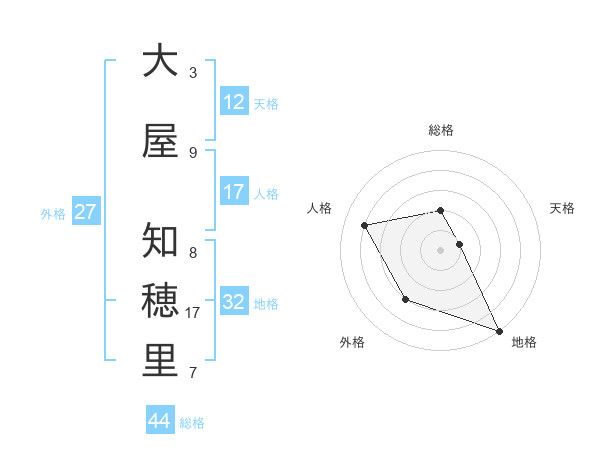 大屋 知穂里さんを姓名の画数から五運を鑑定