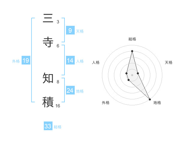 三寺 知積さんの地格は24画の5点!