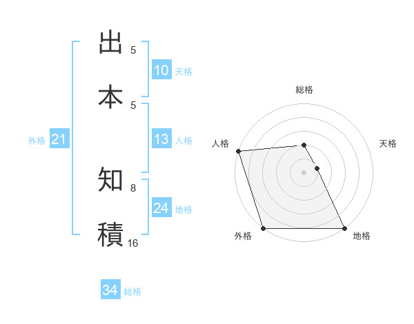 出本 知積さんの外格は21画の5点!