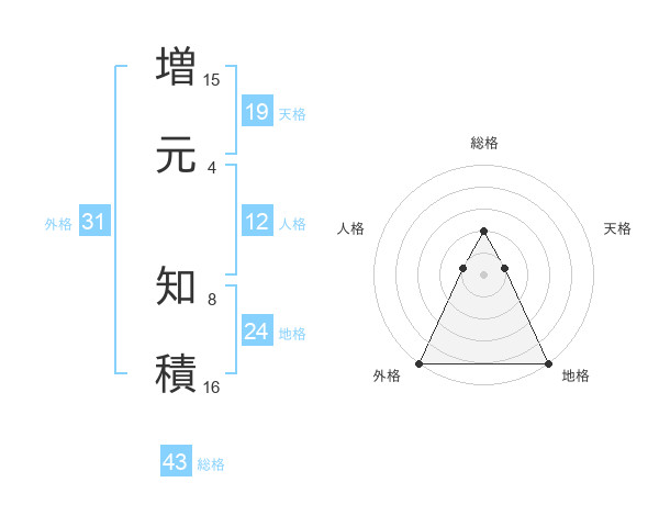 増元 知積さんの外格は31画の5点!