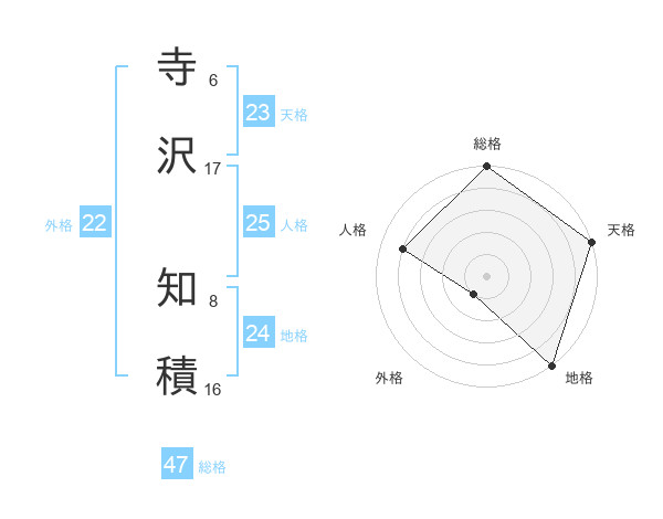 寺沢 知積さんの総格は47画の5点!