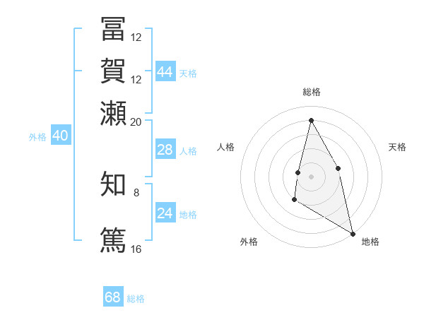 冨賀瀬 知篤さんの総格は68画の4点!