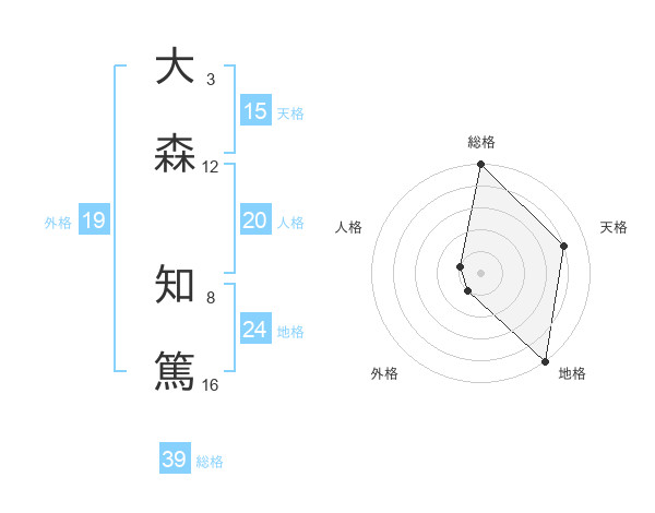 大森 知篤さんの総格は39画の5点!
