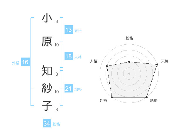 小原 知紗子さんを姓名の画数から五運を鑑定