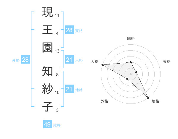 現王園 知紗子さんを姓名の画数から五運を鑑定