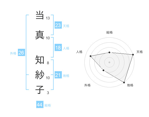 当真 知紗子さんの天格は23画の5点!