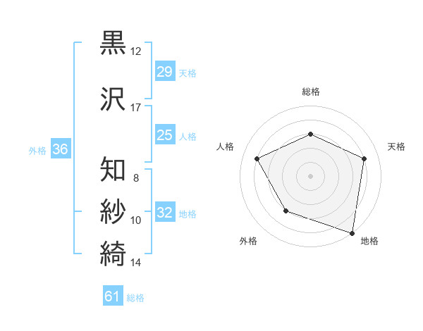 黒沢 知紗綺さんを姓名の画数から五運を鑑定
