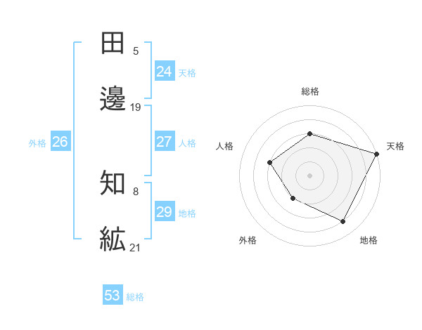 田邊 知絋さんの総格は53画の3点!