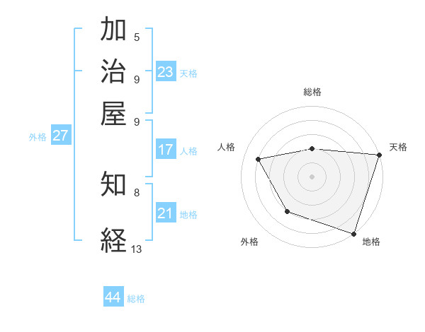 加治屋 知経さんを姓名の画数から五運を鑑定