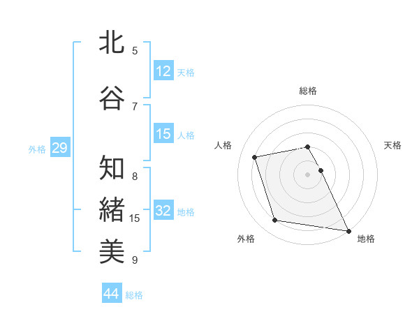 北谷 知緒美さんを姓名の画数から五運を鑑定