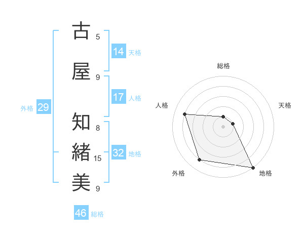 古屋 知緒美さんの地格は32画の5点!