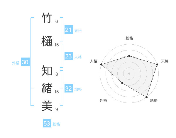 竹樋 知緒美さんを姓名の画数から五運を鑑定