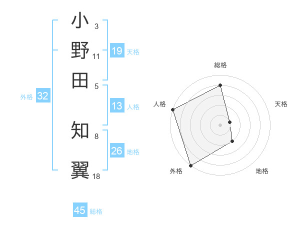 小野田 知翼さんを姓名の画数から五運を鑑定
