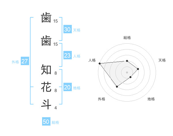 歯歯 知花斗さんの天格は30画の2点!