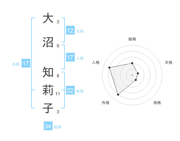 大沼 知莉子さんを姓名の画数から五運を鑑定