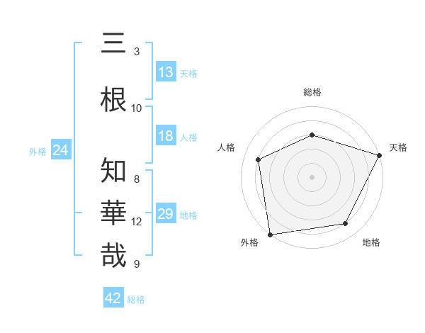三根 知華哉さんを姓名の画数から五運を鑑定
