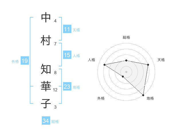 中村 知華子さんの天格は11画の4点!