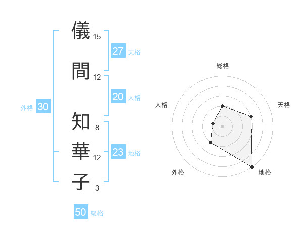 儀間 知華子さんの地格は23画の5点!