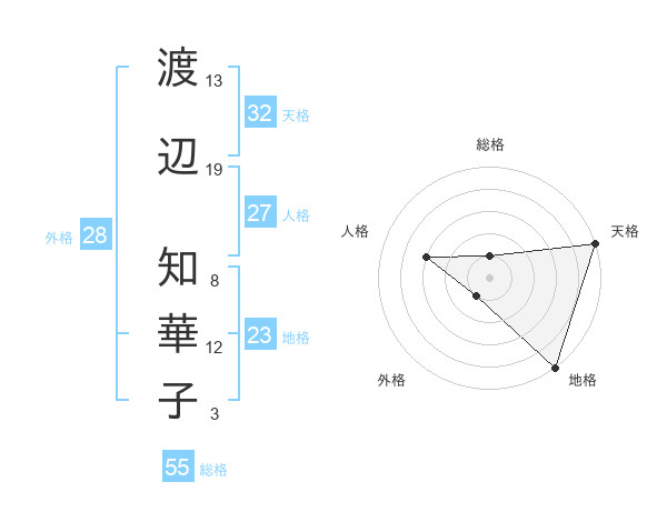 渡辺 知華子さんを姓名の画数から五運を鑑定