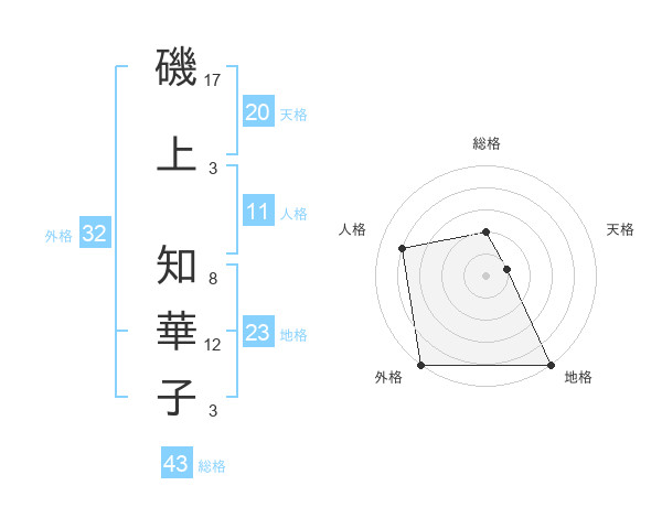 磯上 知華子さんの外格は32画の5点!