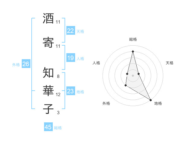 酒寄 知華子さんの総格は45画の4点!
