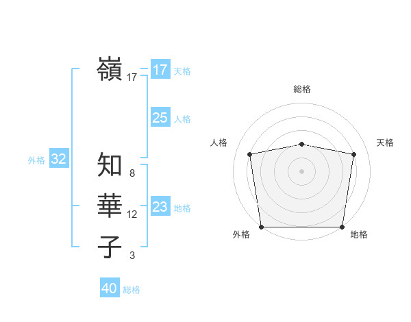 嶺 知華子さんを姓名の画数から五運を鑑定