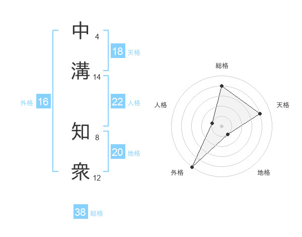 中溝 知衆さんの総格は38画の4点!