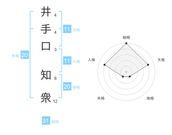 井手口 知衆さんを姓名の画数から五運を鑑定