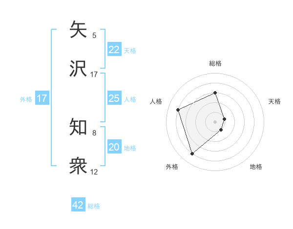 矢沢 知衆さんの天格は22画の1点!