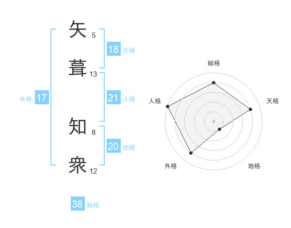 矢葺 知衆さんを姓名の画数から五運を鑑定