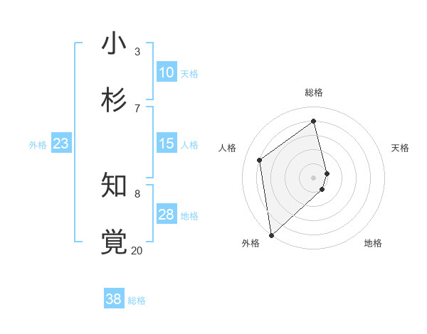 小杉 知覚さんの総格は38画の4点!