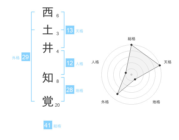 西土井 知覚さんを姓名の画数から五運を鑑定